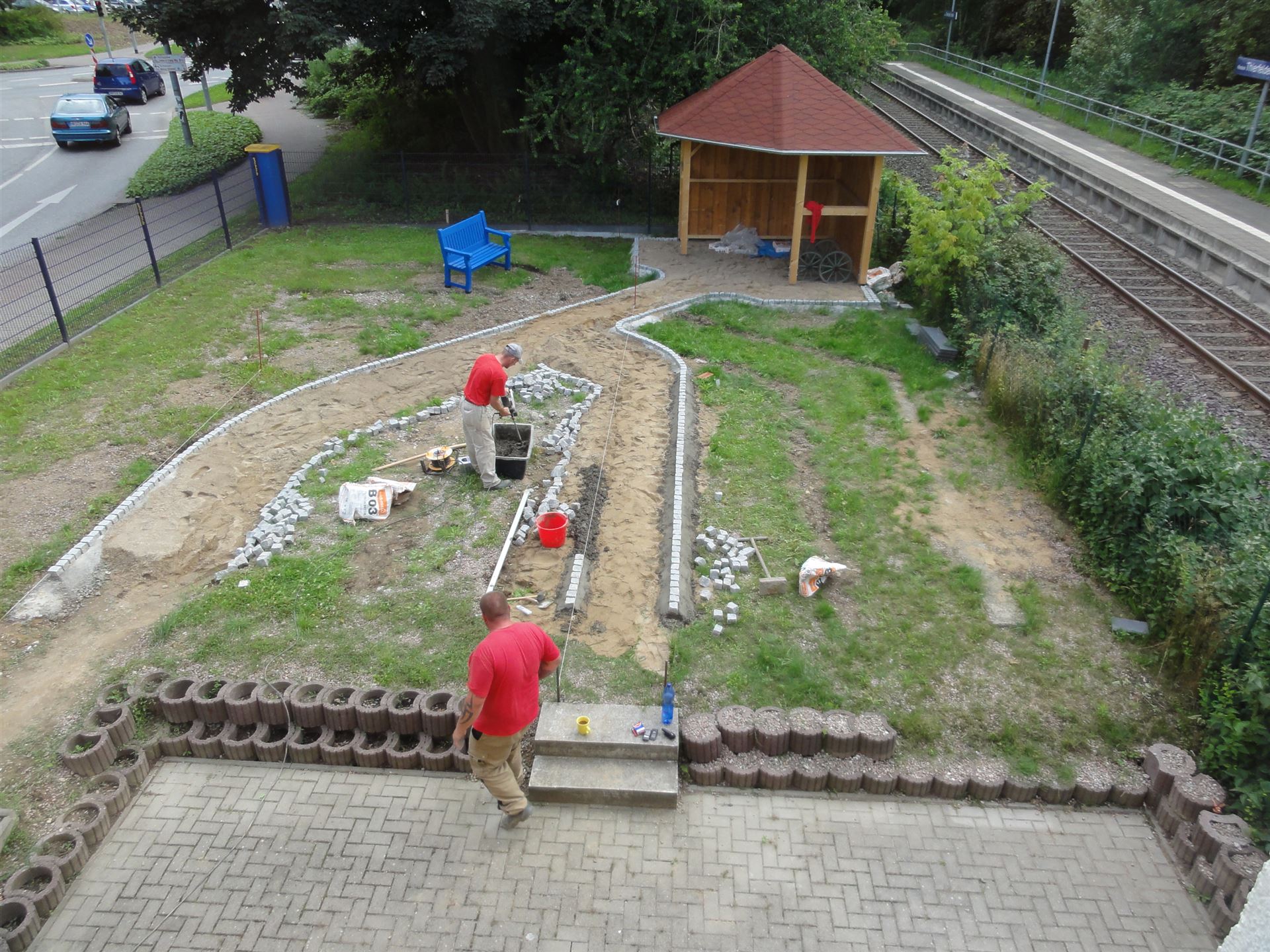Aufstellen von Palisaden aus Holz, Beton oder Recyclingmaterial (Müllstellplatzeinhausungen)