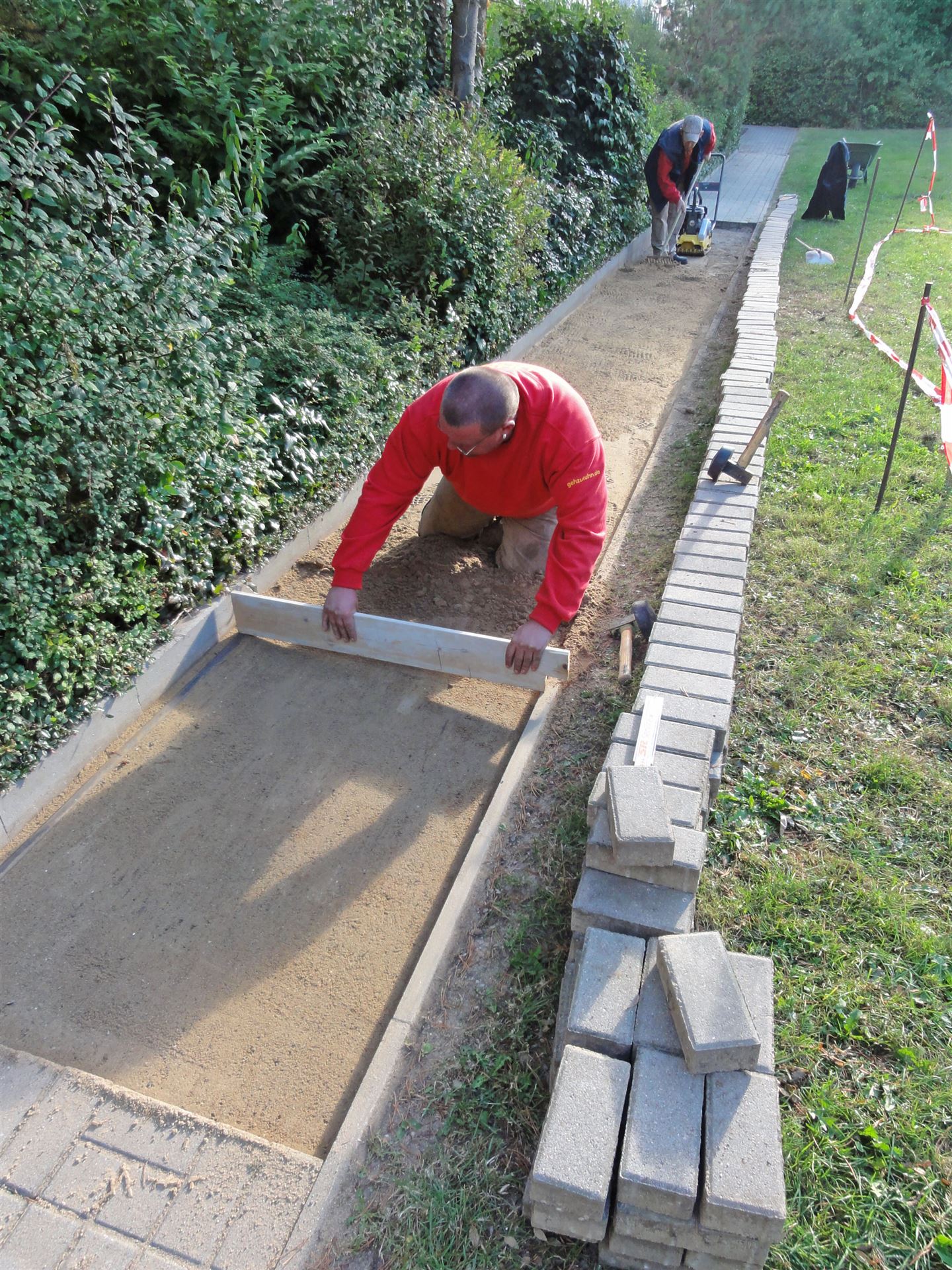 Erneuerung von gepflasterten Flächen, z. B. Gehwegen, Fahrradabstellflächen oder Zufahrten