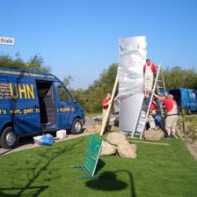 Montage von Werbetafeln und Aufstellern mit Betonfundamenten